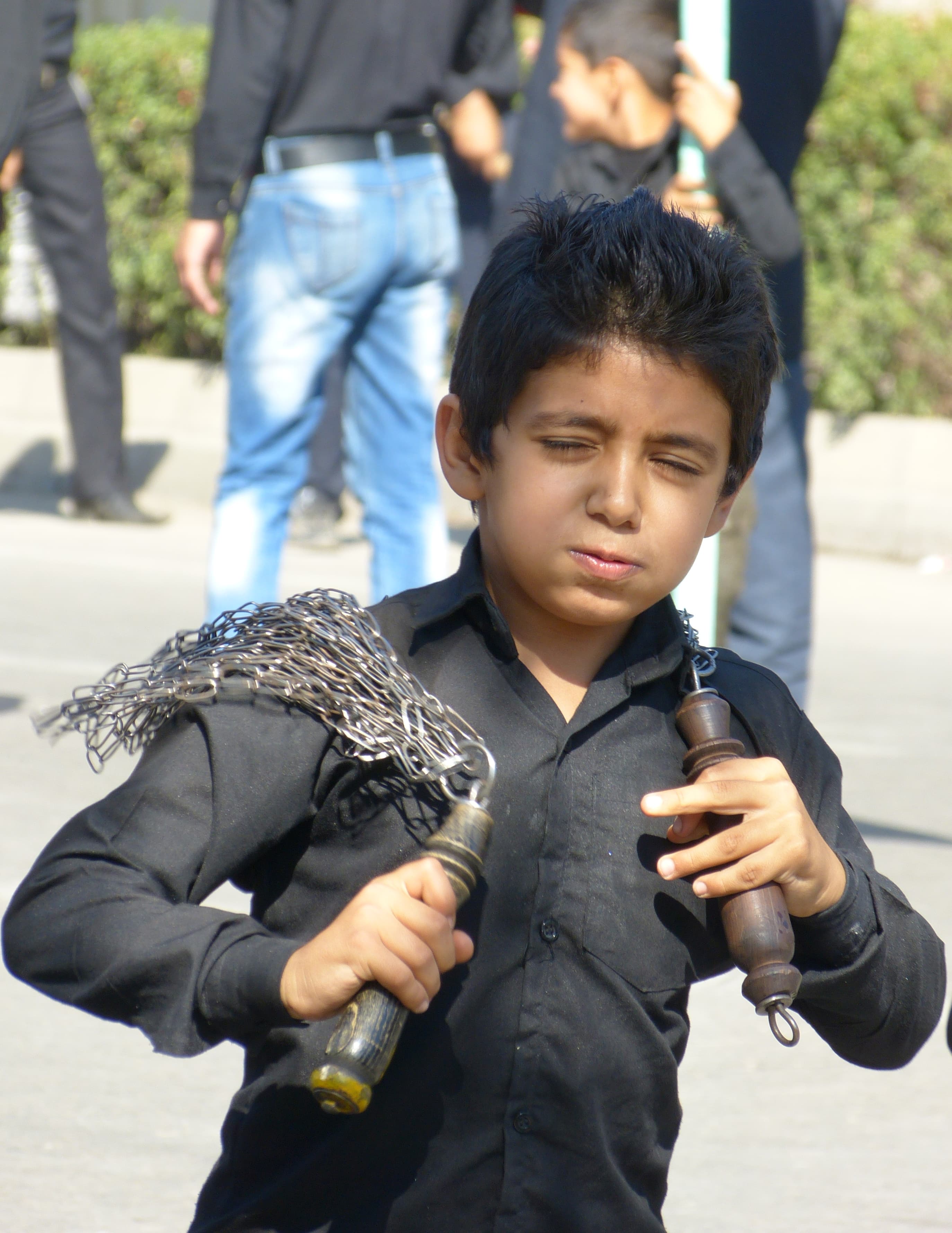 Dieser Büßerzug mag Vorbild sein für die Prozessionen, die an Tasua (dem 9. Tag) und Ashura an vielen Orten stattfinden. Unter Trommelwirbeln rezitiert ein Vorbeter, die Männer schlagen sich wuchtig im Takt auf die Brust. Andere haben Geißeln, Metallketten an einem Holzgriff, und schlagen sich damit – symbolisch – im Rhythmus auf die Schultern – einmal rechts, dann links, dann wieder rechts. Früher soll dies blutig gewesen sein, heute mag es einige blaue Flecken hinterlassen. Andere tragen Schwerter, oft auch ähnlich geformte Stöcke, mit deren Breitseite man auf die Stirn schlägt. Dazu der rhythmische Aufschrei als Antwort auf den Vorbeter. Die Prozessionen ziehen sich über Stunden. Als Wahrzeichen der einzelnen Dörfer oder Bruderschaften werden schwere Eisengestelle voran getragen, mit Vogelmotiven und Blumen geschmückt. So schwer, dass der einzelne sie nur kurze Strecken tragen kann. Eine Ehre und eine Tortur. In der Nacht werden Feuertöpfe daran gehängt – beeindruckende Bilder.