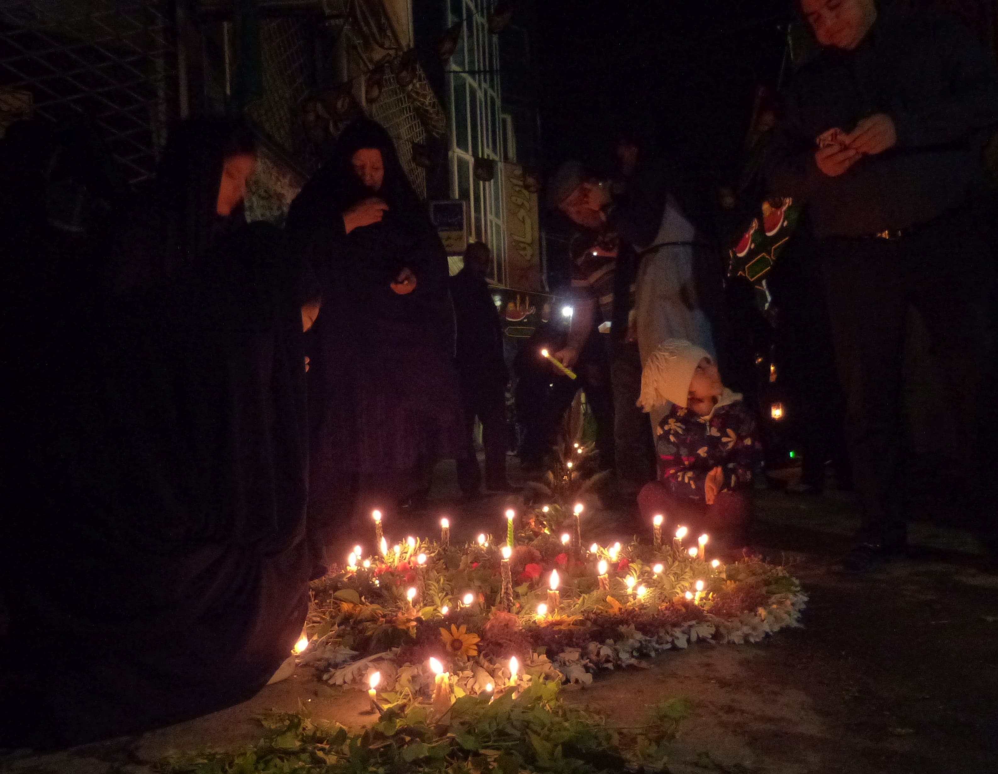 Am Abend gibt es kleinere Trauerfeierlichkeiten, ähnlich unseren Trauergottesdiensten, mit Klagegesängen, mit einer Predigt des Imam über das Martyrium Husseins. Und: man stellt Kerzen auf, manchmal rund um kleine Tannengestecke, ein wenig wie unsere Grab- und Adventsgestecke, hält eine Weile inne, führt die Kinder an diesen Ritus heran.