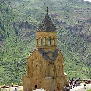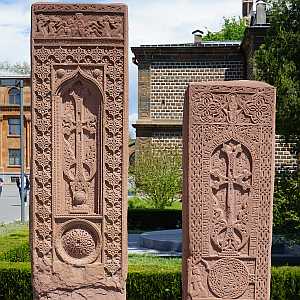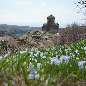 Anders als im Vorjahr ist noch spät Schnee gefallen: im Aragats-Gebirge liegt noch einiges, der Ararat und der Kleine Ararat sind noch tief verschneit, ebenso viele Berge im Großen Kaukasus rund um den Kasbeg. Unten in den Tälern aber bereits schönster Frühling. Die Temperatur ist zum Reisen ideal: mit dem Besuch der zahlreichen Klöster, des römischen Tempels, dem Kennenlernen von Wein und Kognak, von Schrift und alten Büchern, aber auch der armenischen Geschichte von alten Urartu bis zum Genozid und den Auseinandersetzungen mit Aserbeidjan. Kreuzsteine - als Wegkreuze oder Grabkreuze - ziehen sich wie ein roter Faden durch das Land.