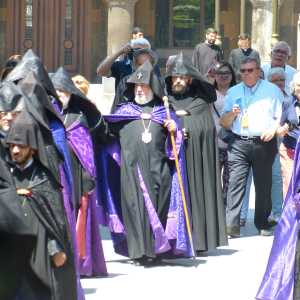 Der Katholikos der Armenisch-Apostolischen Kirche zieht in die Kathedrale von Etschmiadsin ein. -