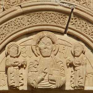 Noravank mit einem wunderschönen Tympanon in typisch armenischer Gestaltung mit der typischen Segenshaltung der rechten Hand und den Aposteln Petrus und Paulus. -