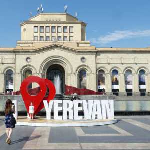Die armenische Sprache hat ein eigenes Alphabet - hier symbolisch dargestellt vor dem Matenadaran-Museum, das eine exquisite Sammlung von Handschriften beherbergt. -