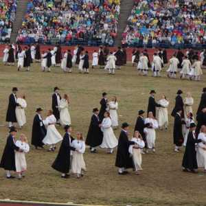 Am selben Wochenende das ebenfalls sehr beeindruckende Tanzfest: über 10.000 Tänzer, meist in den Trachten der verschiedenen estnischen Regionen, tanzen verschiedene "Figuren", Muster, die aus einem scheinbaren Chaos entstehen.