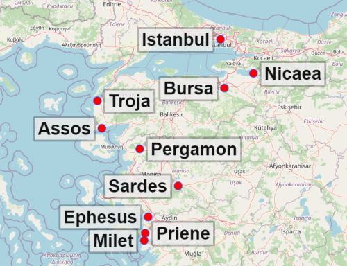 Wir beginnen die Reise in Istanbul, dem alten Konstantinopel, mit der Hagia Sofia, der Hagia Irini (der Konzilskirche), den wichtigsten Moscheen und Sehenswürdigkeiten, den Basaren. Vielleicht reizt Sie ja der Besuch eines Hamams - es gibt eines, das vom berühmten Architekten Sinan? Von dort geht es nach Troia, nach Assos mit seinem berühmten Theater, Pergamon nach Ephesos. Ein Ausflug geht nach Priene und Milet. Über Sardes und Bursa kommen wir zum Konzilsort Nicaea und schließlich zurück nach Istanbul.